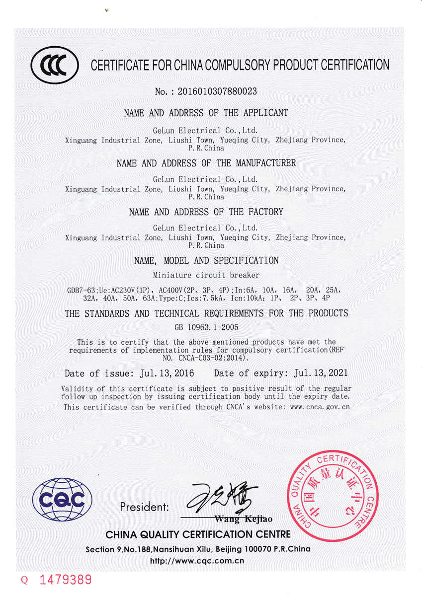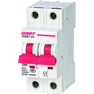 GDB7-63 series miniature circuit breakers have advanced structure, reliable performance, high breaking capacity and modern outlook. It is applied in AC 50Hz or 60Hz, rated working voltage below 400V, rated current 63A or less. It is mainly used for the purpose of lighting of office buildings, residential houses and similar buildings, overload and short circuit protection of distribution lines and equipment, and can also be used as infrequent conversion of lines under normal conditions. The circuit breaker has C-type characteristics and D-type.