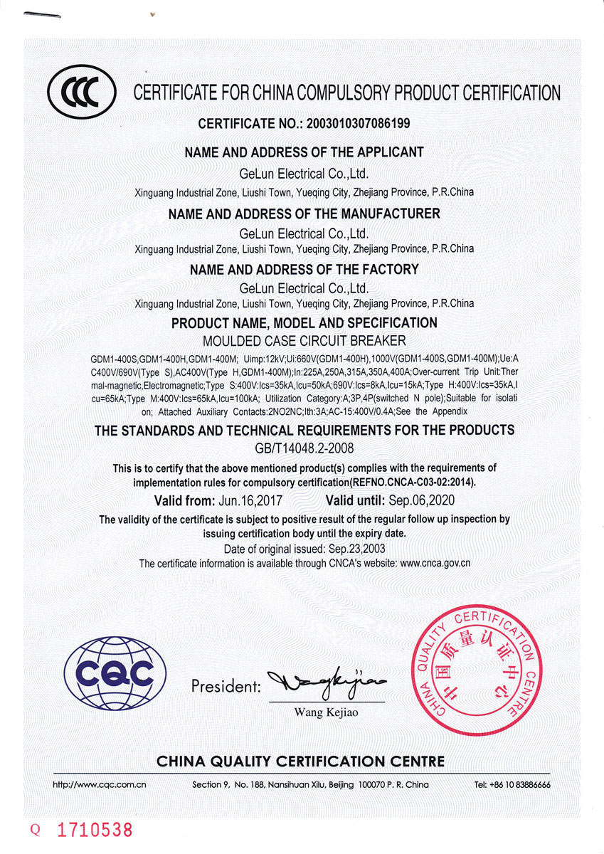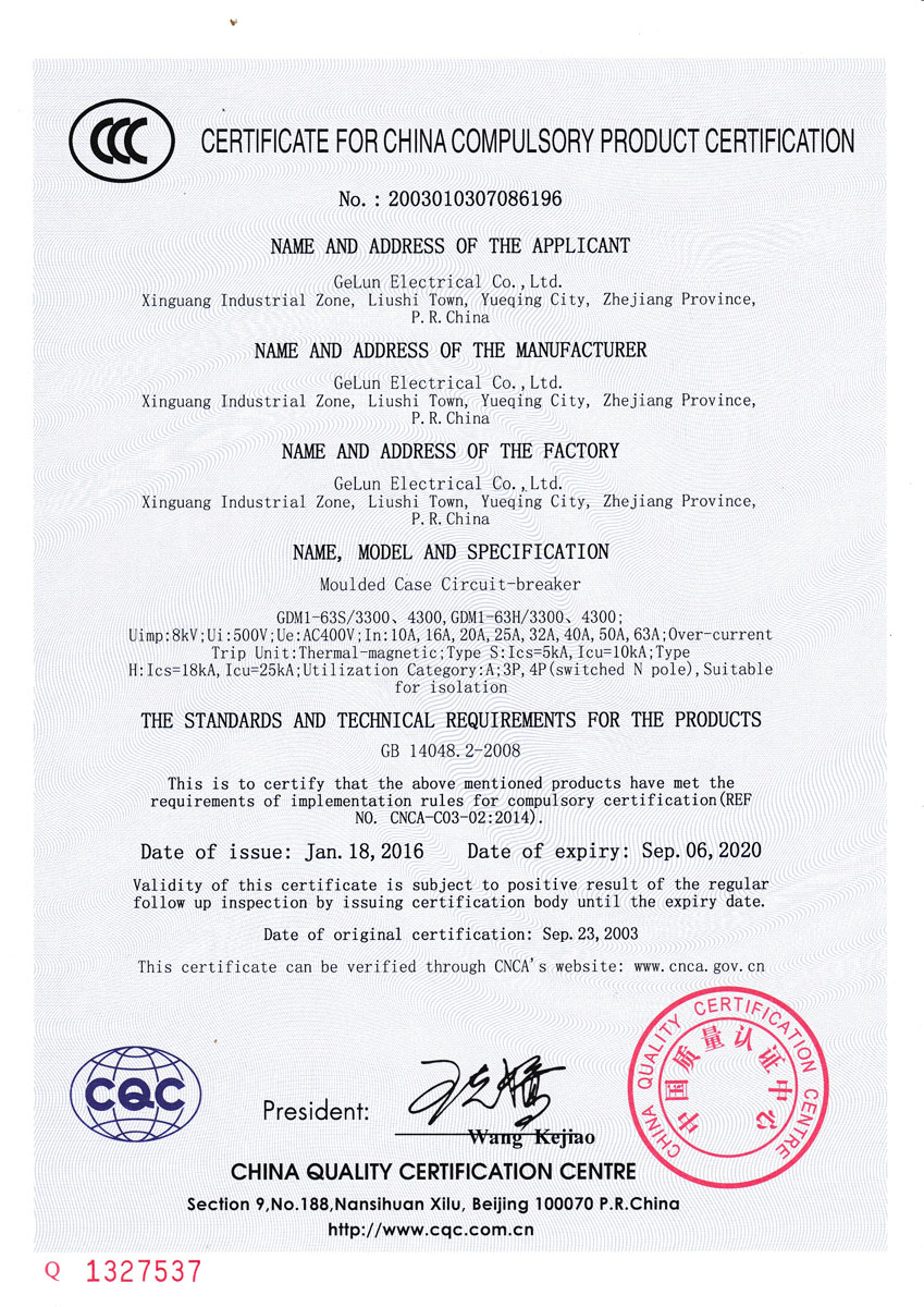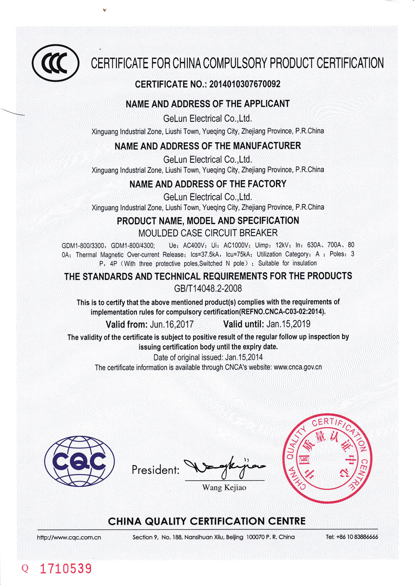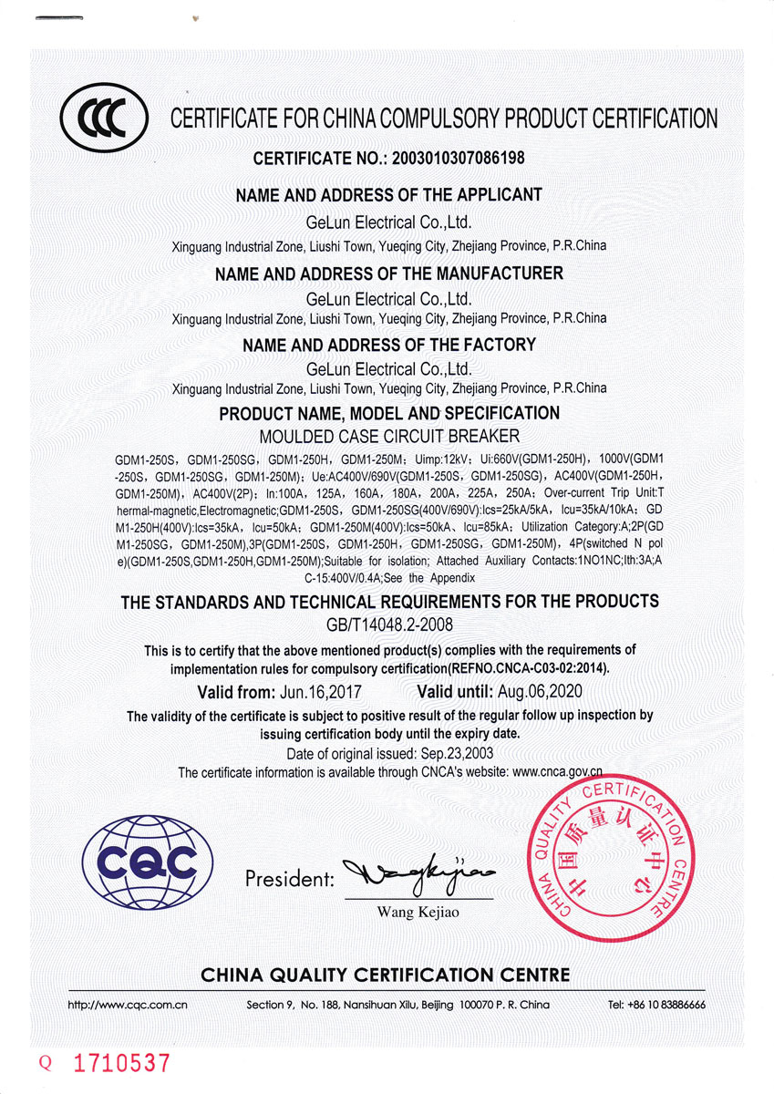 Comply with the IEC60947-2、GB/T 14048.2 Standard