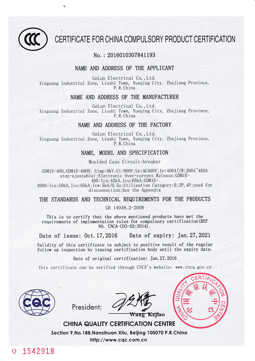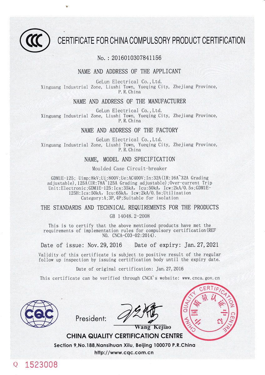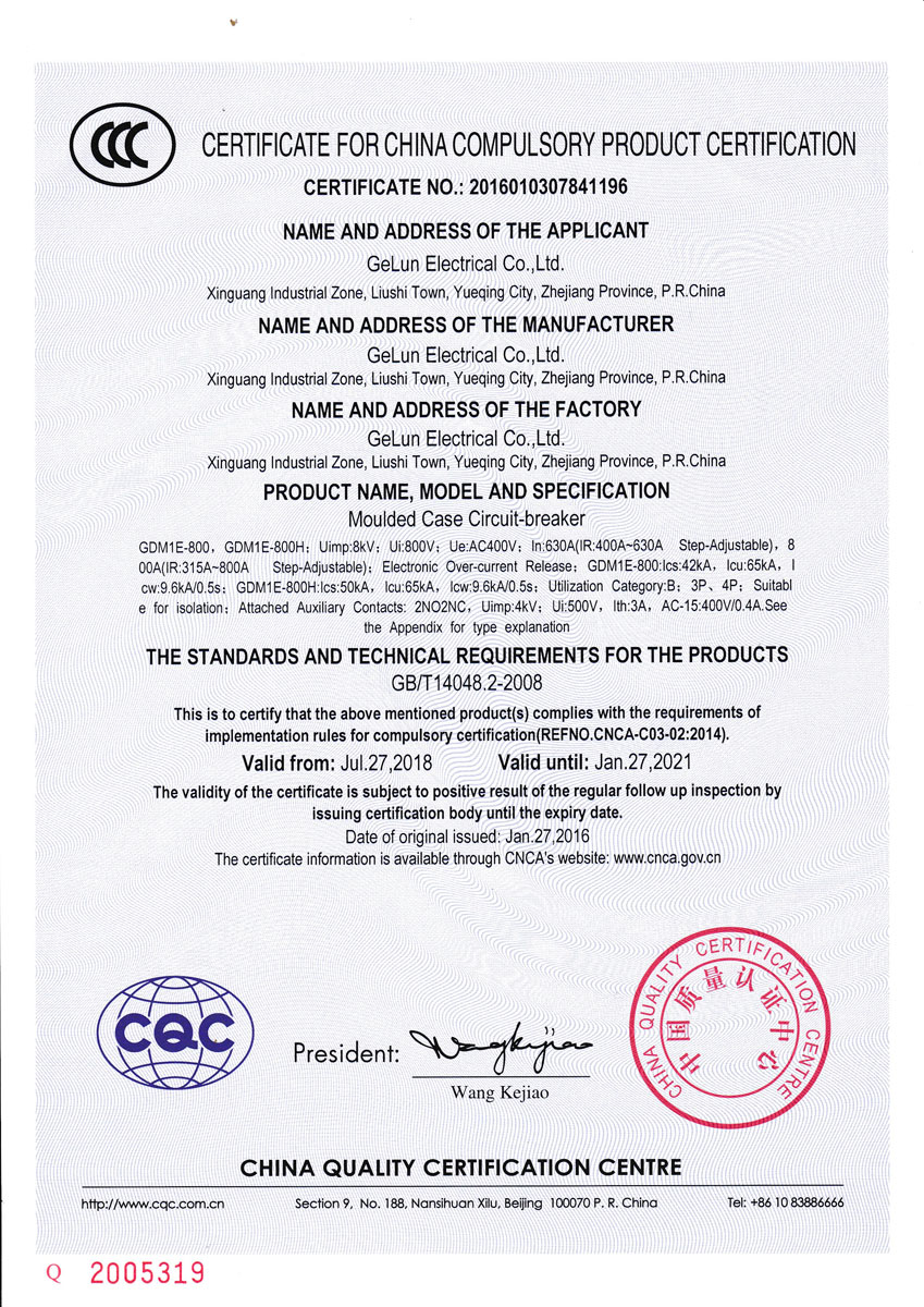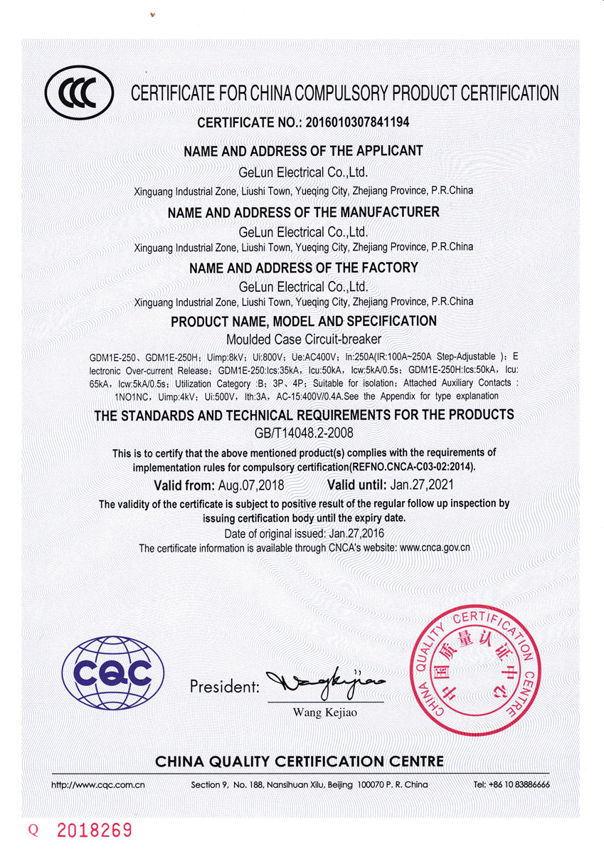 GDM1E series electronic molded case circuit breaker is suitable for AC 50Hz, insulation voltage 800V, rated working voltage 400V in power distribution network circuit, used to distribute power and protect the line and power equipment from overload, short circuit and other electric faults. At the same time, it can also be used as an infrequent starter of the motor. The circuit breaker has an overload long delay inverse time limit, a short circuit short delay inverse time limit, a short circuit short delay time limit, and a short circuit instantaneous protection function. The circuit breaker owns the characteristics of small volume, high breaking capacity, short arcing distance, anti-vibration, etc. The circuit breaker should be vertically installed (ie, vertically mounted), and can also be installed horizontally (horizontal mounting), and it is suitable for isolation purpose.